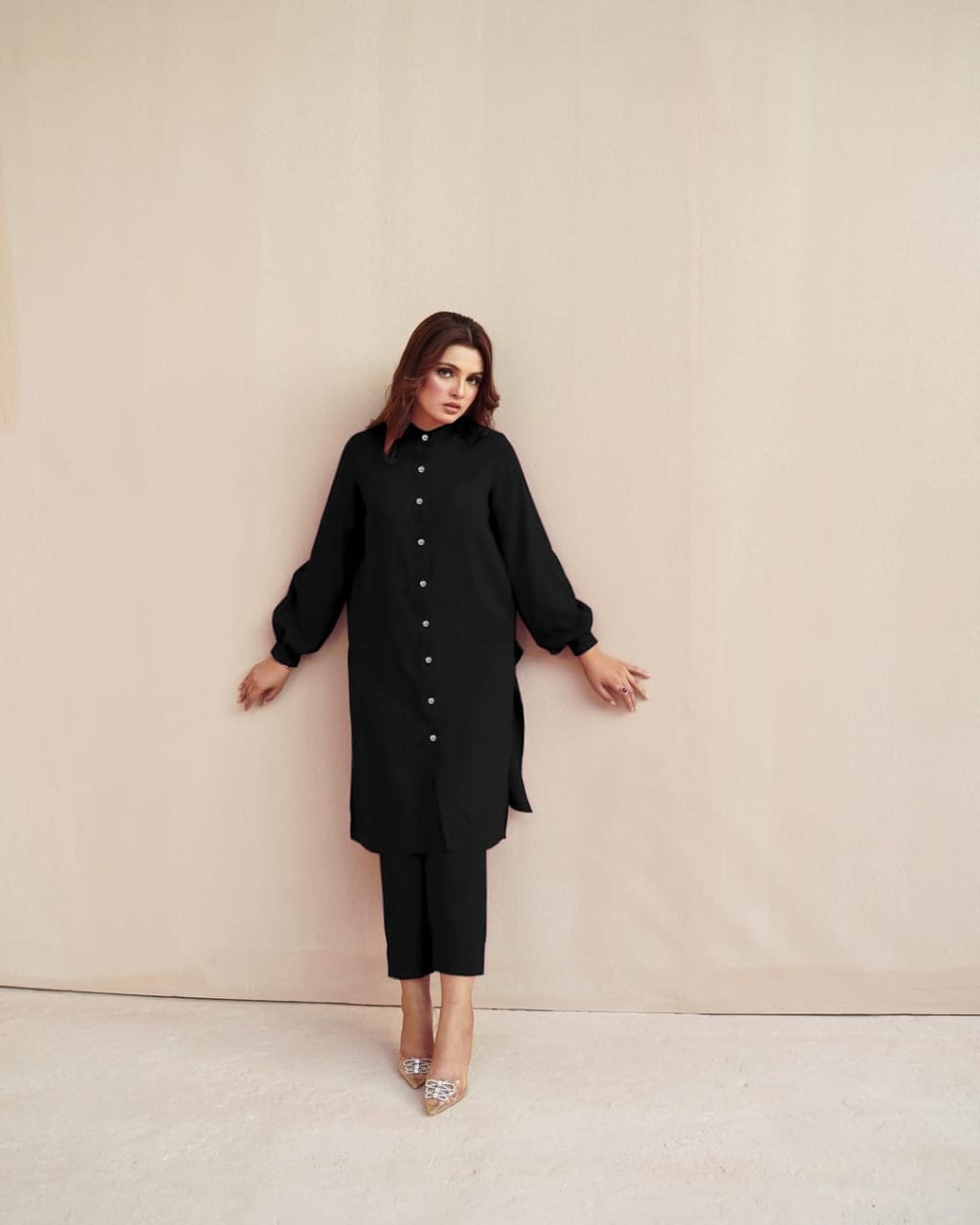 Transform your wardrobe with our premium Oversized Black Co-Ord Set, meticulously crafted from luxurious Georgette fabric that promises both comfort and elegance. Designed with a modern Western twist, this set exudes sophistication and versatility.